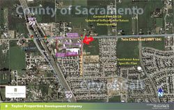 Located just East of Highway 99 on Twin Cities Road (State Route 104), 14 Buildings, 166,000 sq ft. Retail on 17 Acres